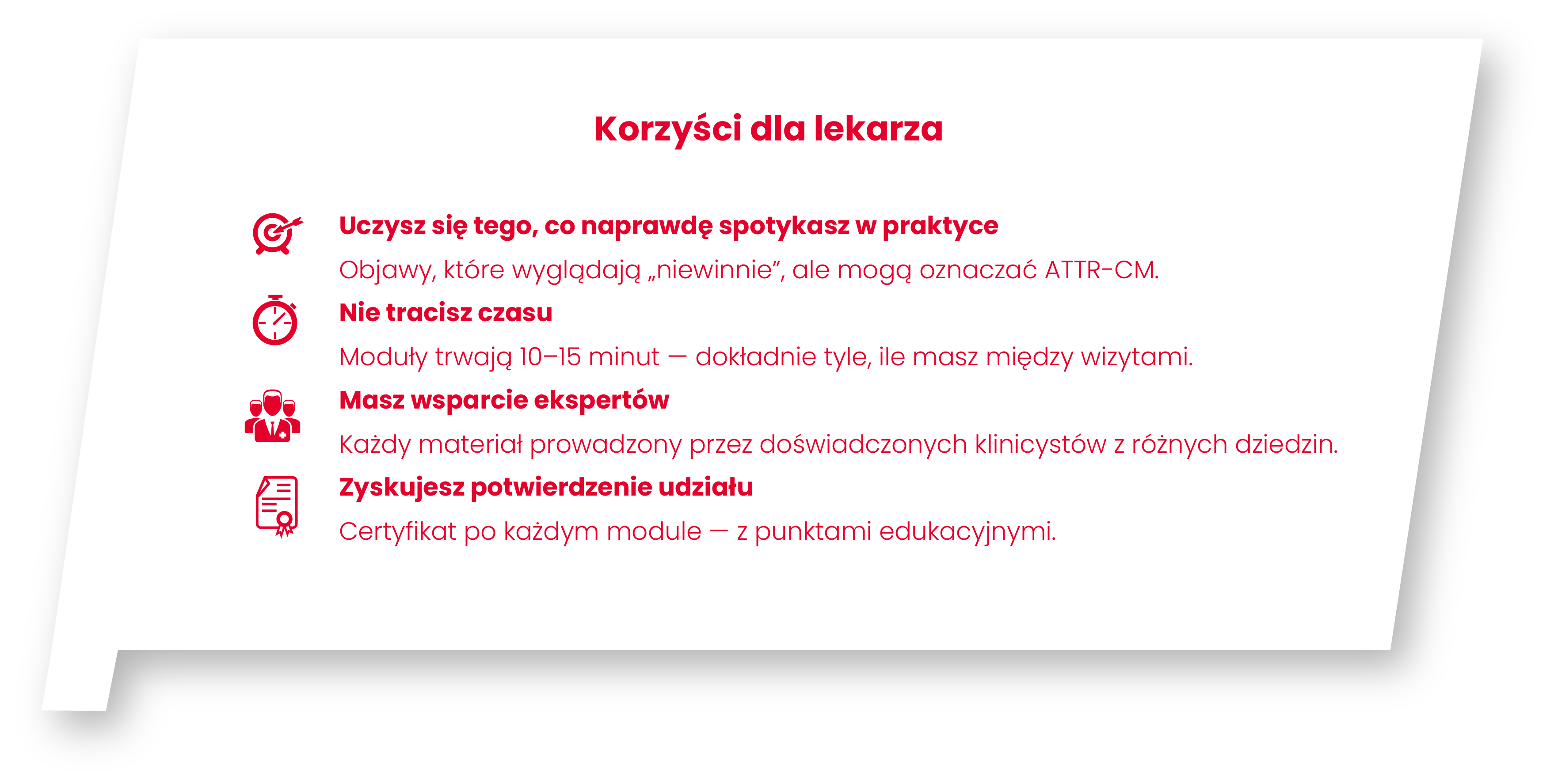 Raz w miesiącu nowy odcinek z 2–3 przypadkami klinicznymi ATTR-CM, omawianymi przez ekspertów. Praktyczne, realistyczne sytuacje, decyzje A/B/C, komentarz specjalisty.
